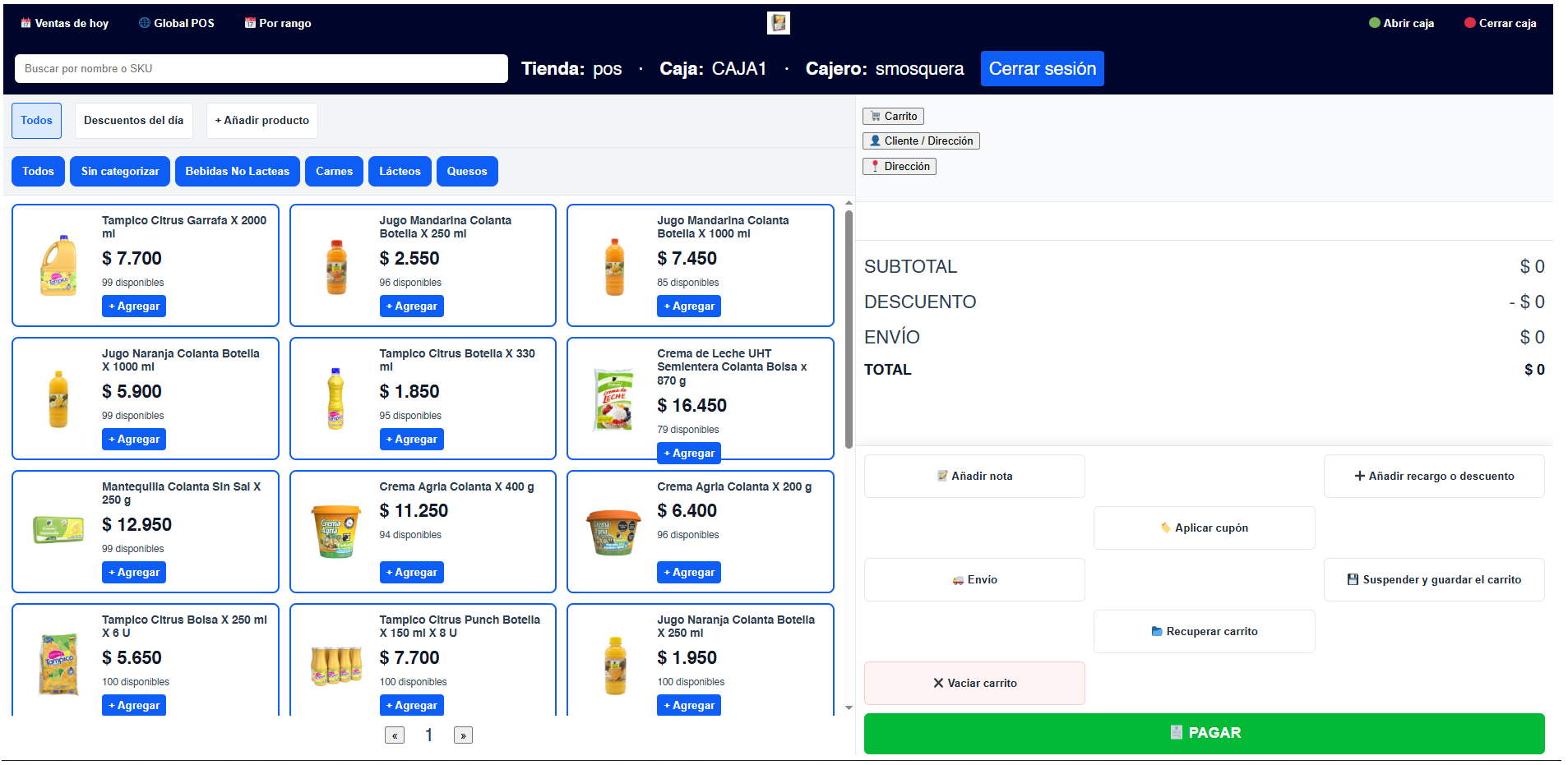 Tickets rápidos, lector de códigos, precios por unidad/paquete, cierres de caja y conexión contable.